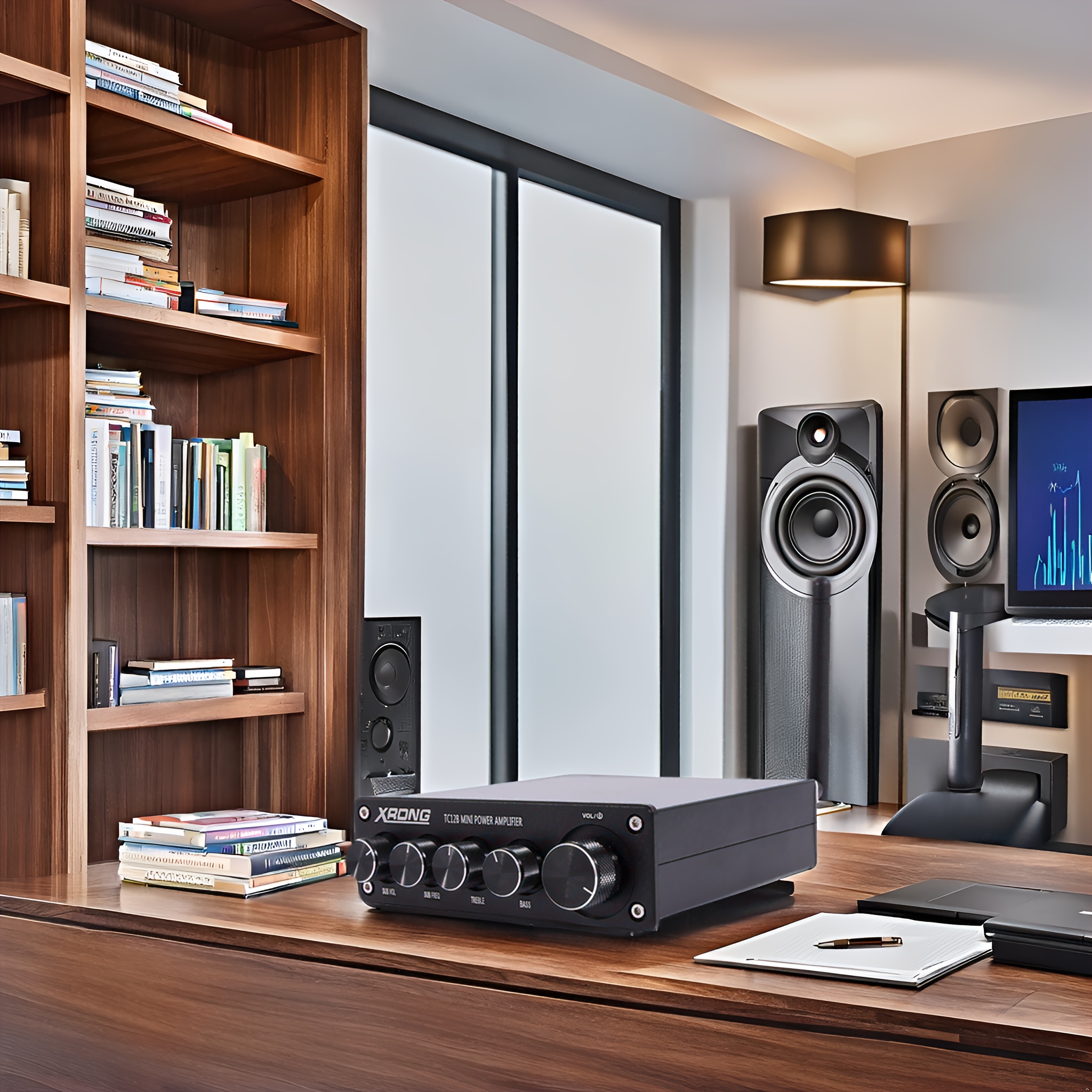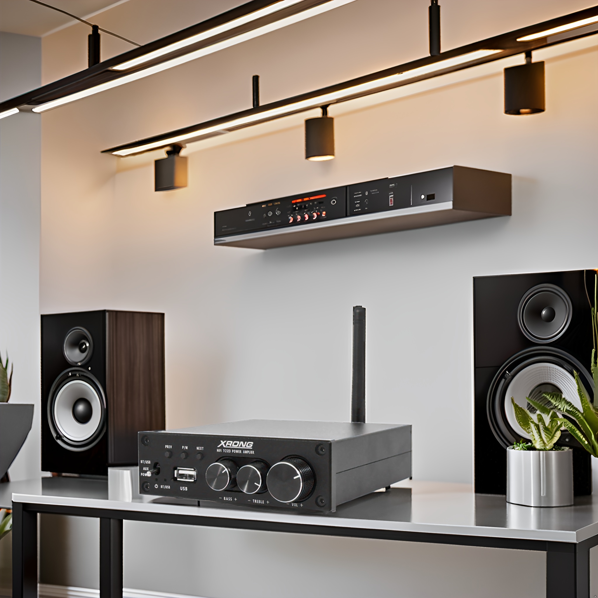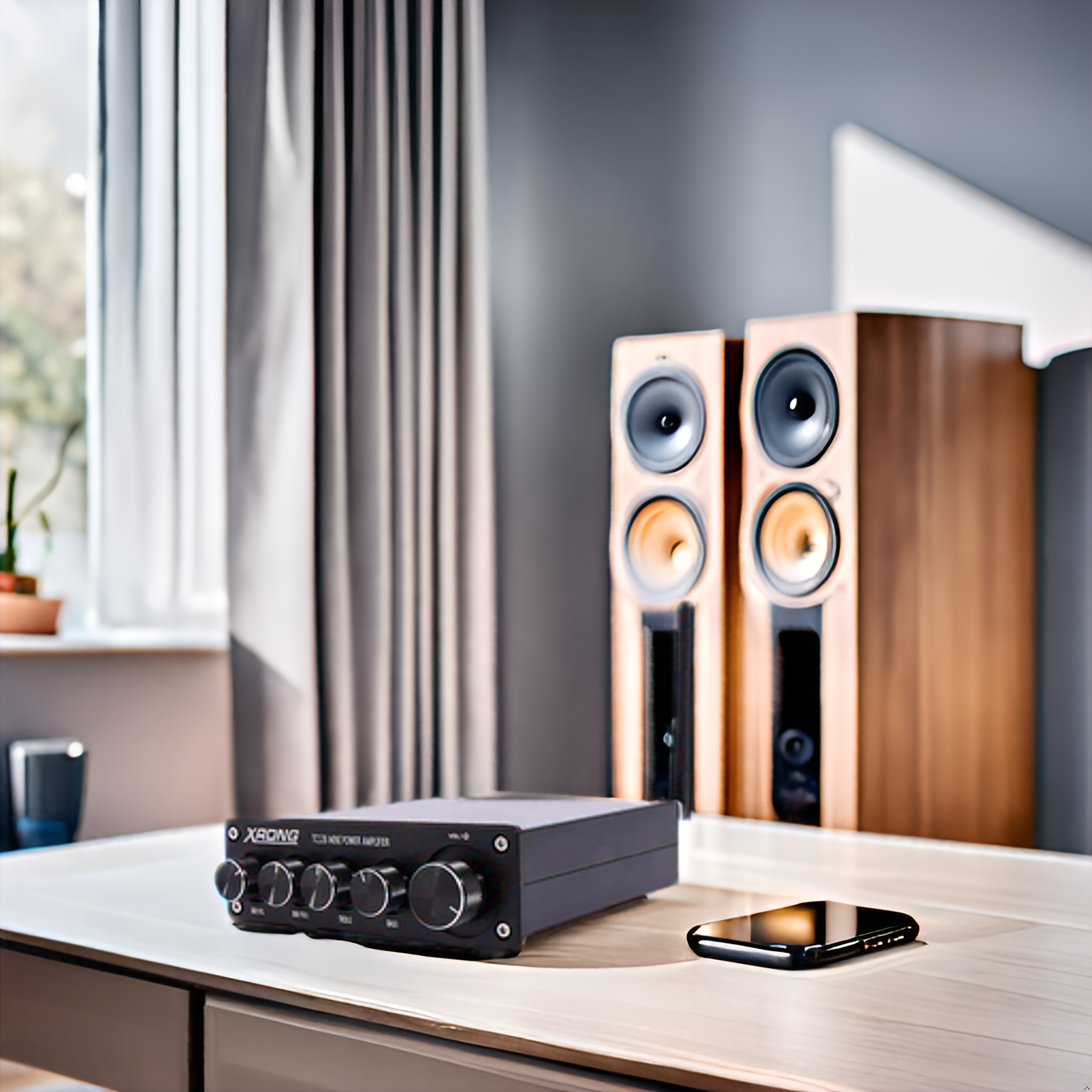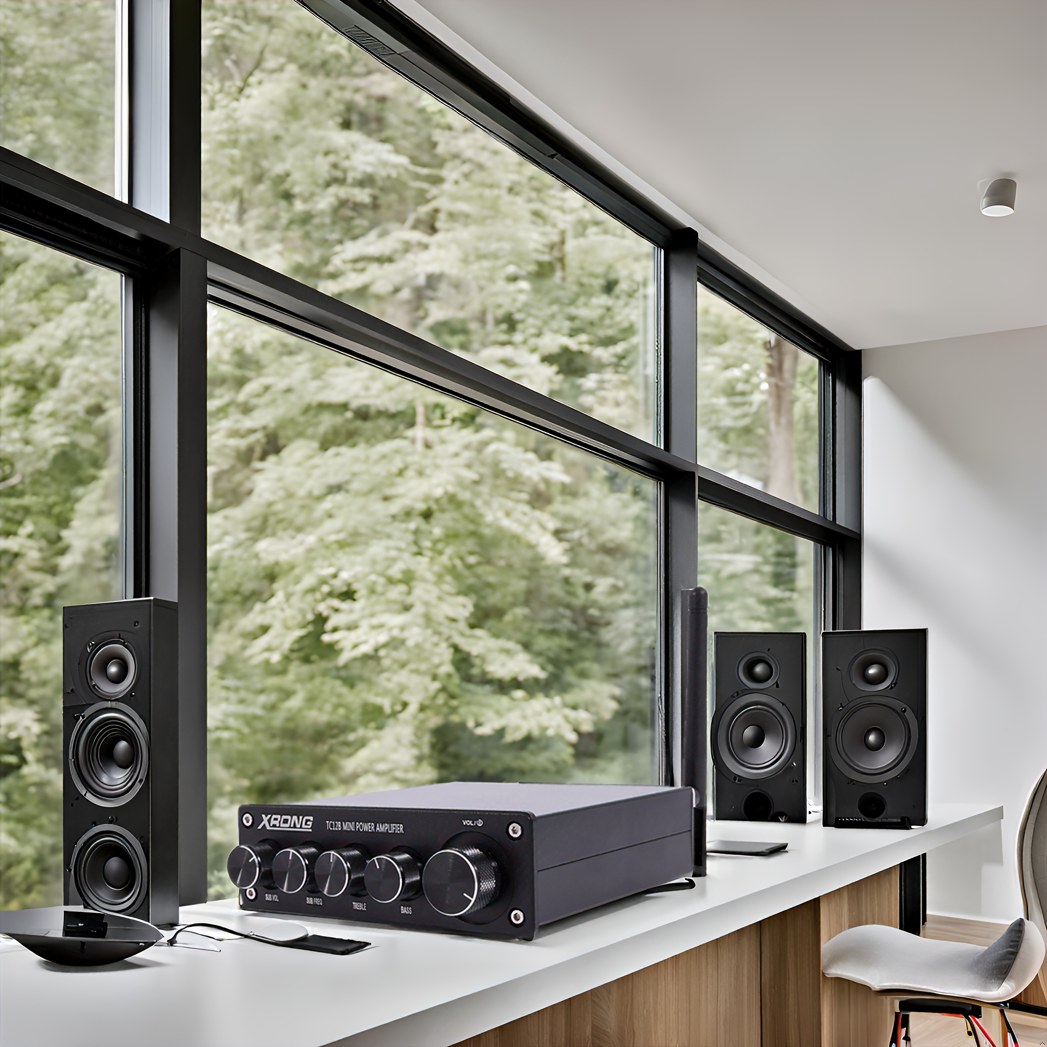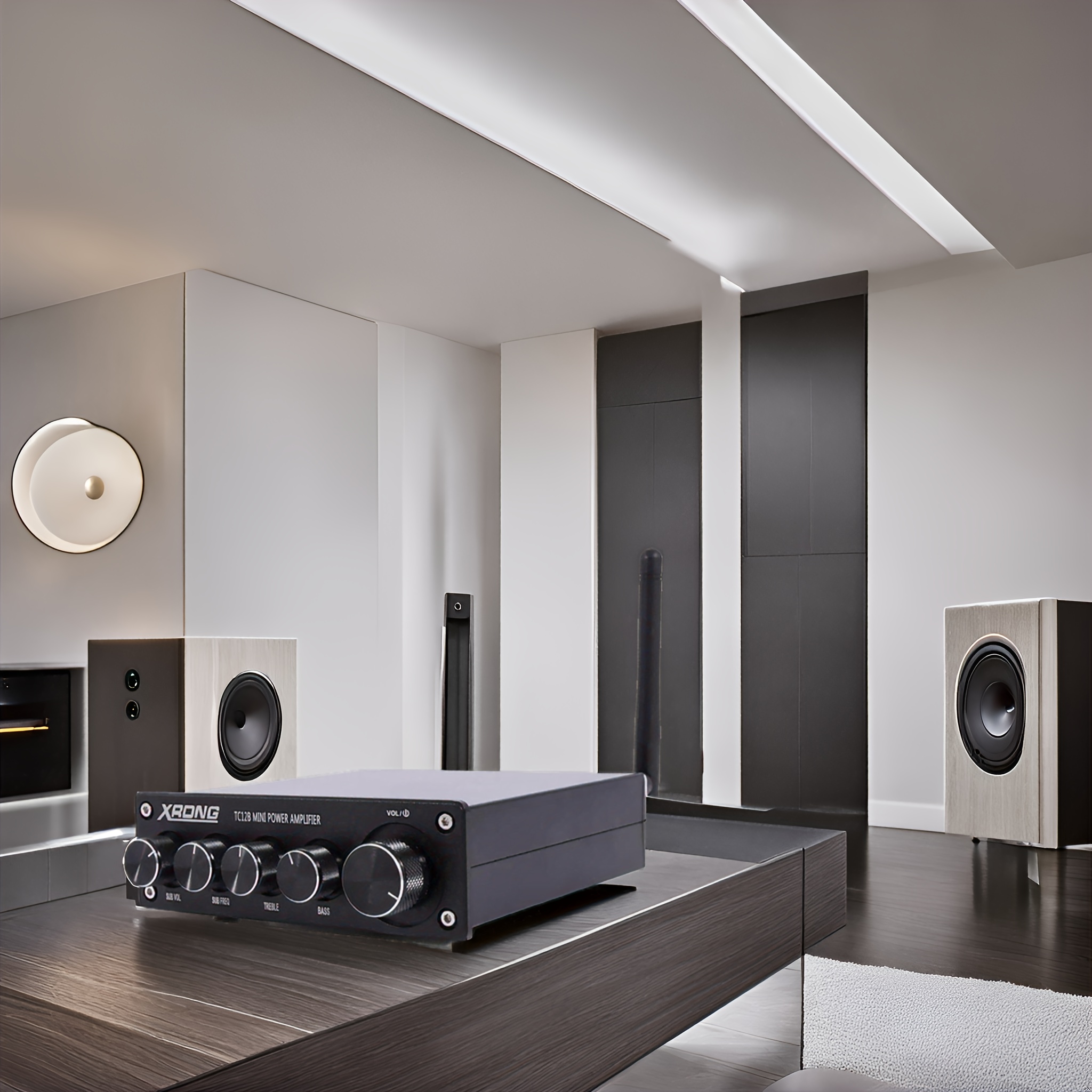Adopting a compact all aluminum classic black shell, it not only has good heat dissipation performance, but also adds a fashionable and textured touch to your home. Exquisite craftsmanship and simple design enable it to perfectly blend into various home styles. Five exquisite pitch adjustment knobs, with a very good feel, allow you to easily adjust volume, treble, bass and other parameters according to your preferences, meeting your personalized neSuitable for various occasions and catering to different users