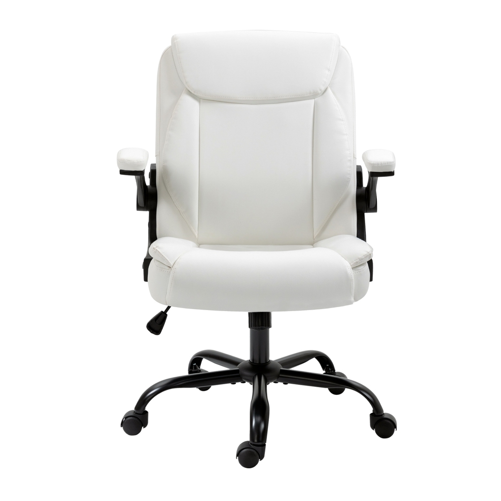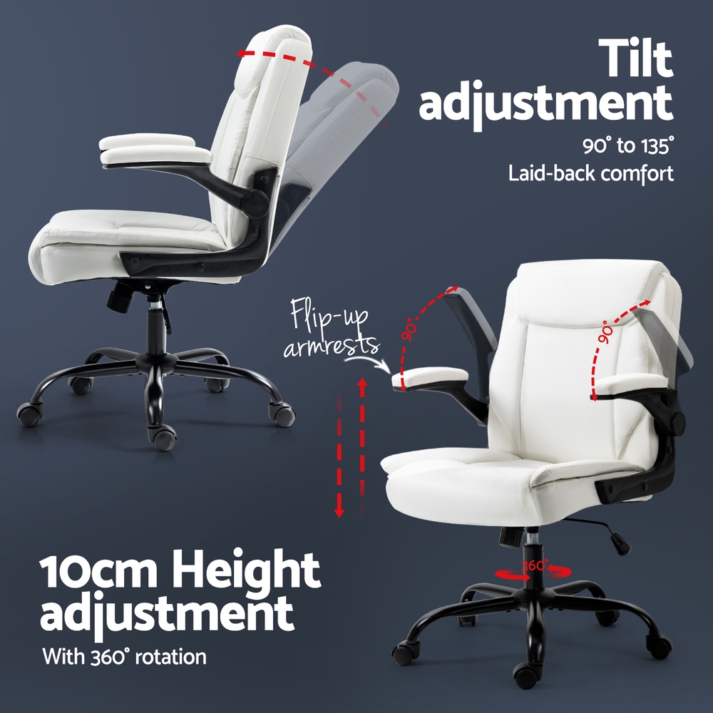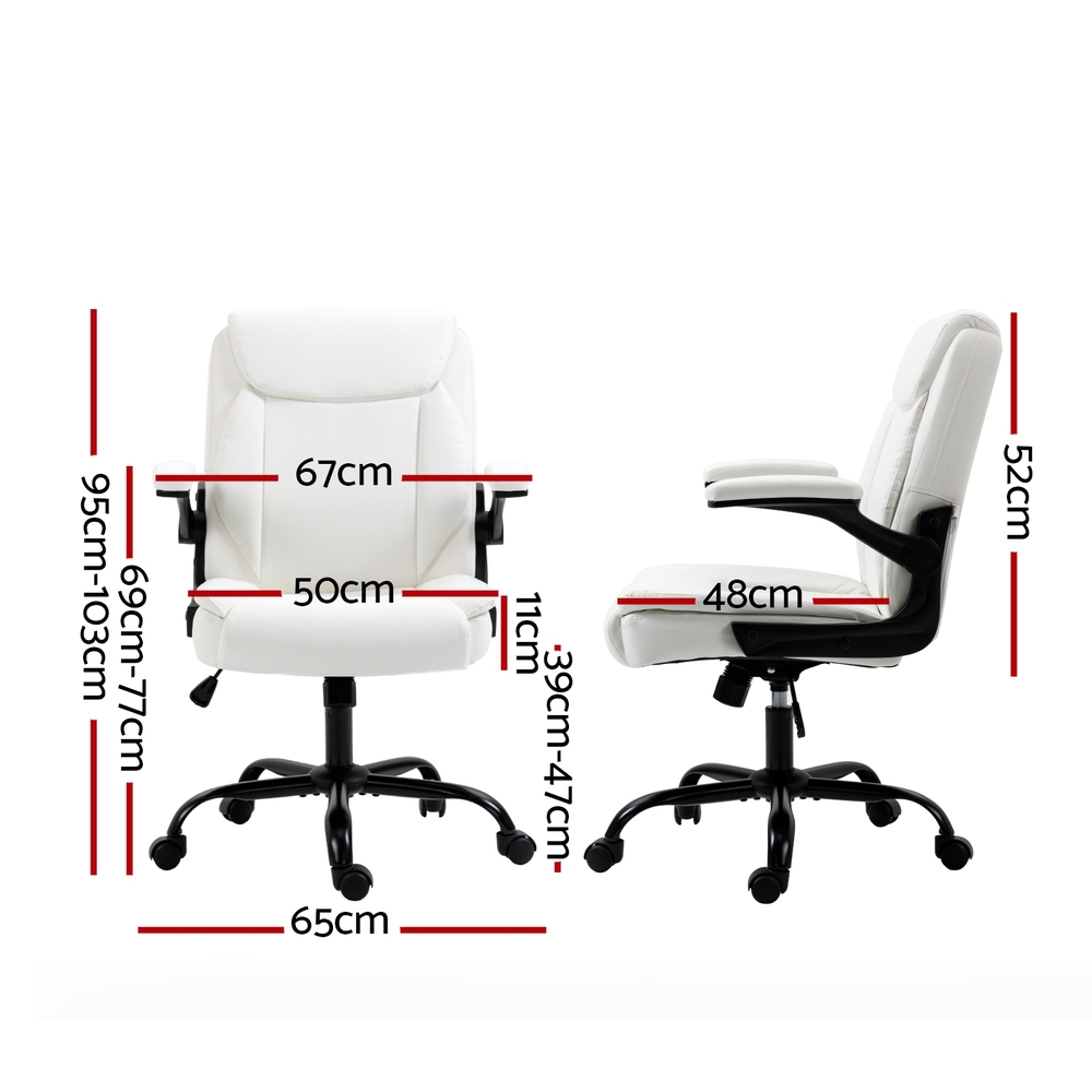 Is your office chair giving you a tough time? Stay productive and work feeling comfortable with our Artiss Chastine office chair. The office chair that makes work feel laid back. The more comfortable chair, the higher is the productivity. Our office chair is designed with your comfort in mind and will have your back so that you can focus on the more significant things. Crafted precisely with durable wood frame material, the office chair is sturdy and comes with a high-density foam padding for ultimate comfort. It features premium PU leather upholstery that's easy to clean and maintain. Furthermore, the stylish metal base is not to be missed. It also features a contoured high-back design that will give you the support you need and help you have a better posture. Plus, the office chair can be adjusted to your preferred requirements; adjust the height to suit your needs, adjustable tilt for a comfortable sitting position, 360˚ rotating seat, 90˚ flip-up armrests, and easy mobility around your workspace with smooth castor wheels. Contemporary and well-crafted, our Artiss Chastine office chair is sure to offer you a super comfortable seat all day long. Contoured seatHigh-back designPremium PU leather upholsterySolid wooden frameHigh-density foam padding90° flip-up armrests360° rotating seatHassle-free height adjustmentAdjustable tiltStylish metal baseEasy to cleanQuick assemblyBrand: ArtissColour: BlackSeat material: PU leather and foamFrame material: Metal and woodArmrests material: Foam and plasticBase material: MetalMaximum weight capacity: 120kgOverall dimensions: 67cm x 65cm x 95cm-103cm (WxDxH)Seat dimensions: 50cm x 48cm x 52cm (WxDxH)Armrest height: 69cm-77cmSwivel: YesAdjustable seat height: YesTilt tension adjustment: YesRecline adjustment: NoCastors included: YesAssembly required: YesNumber of packages: OneArtiss Chastine Office Chair x 1User Manual x 1